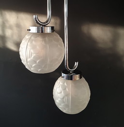 Classic art deco pendant lamp with chrome fitting and two frosted glass balls
