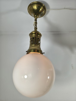 Brass pendant with milk glass ballBrass pendant with milk glass ball