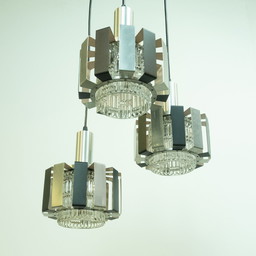 3-piece ceiling light, stainless steel, 1960s