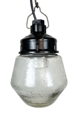 Industrial Grey Enamel Factory Hanging Cage Lamp, 1960s