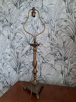 Beautiful vintage table lamp with a motif. Made of wood and metal. Height: 59 cm. Lampshade diameter: 30 cm.Beautiful vintage table lamp with a motif. Made of wood and metal. Height: 59 cm. Lampshade diameter: 30 cm.