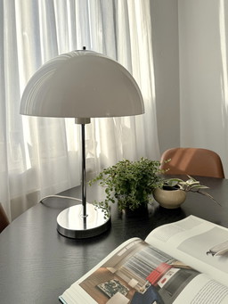 A beautiful vintage Gispen, a cool space age mushroom lamp or a modern, high-end Kartell table lamp: we have light sculptures in various styles and materials. Many vintage lamps are made of (smoked or murano) glass, brass, chrome and steel. These materials are still widely used today in the production of modern lamps because they make them last a long time. So the pre-loved table lamps on Whoppah can still last a few rounds. Which style suits you?