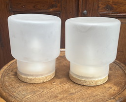 Vintage design white satin glass table lamp from the French brand SCE, model Hurricane. Height 28 cmVintage design white satin glass table lamp from the French brand SCE, model Hurricane. Height 28 cm