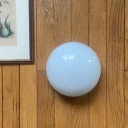 Half-moon ceiling or wall light, 20 cm, white opaline glass, 1960s-1970s, vintage light fixture