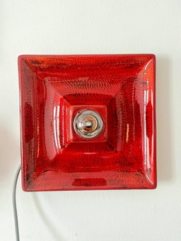 Vintage Square Red Ceramic Fat Lava Wall Lamp by Hustadt Leuchten, Germany, 1970sVintage Square Red Ceramic Fat Lava Wall Lamp by Hustadt Leuchten, Germany, 1970s