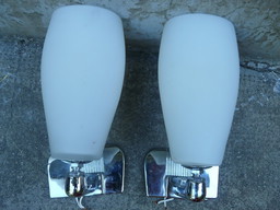 Pair of sconces in chrome and sandblasted glass, Italy, 1970