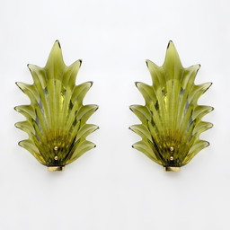 Set of six De Majo sconces in thick green murano glass. Italy 1980s
