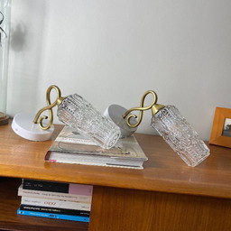 Set of Vintage Glass Wall Lamps with Gold Holder, 1970s
