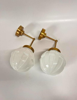 2 pcs Superb Art Deco wall lights Thabur white with brass holder2 pcs Superb Art Deco wall lights Thabur white with brass holder