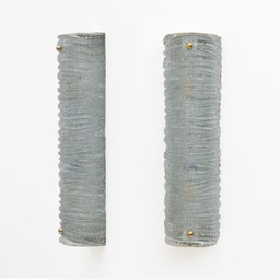 Pair of Art Deco-style aquamarine Murano glass and brass wall lamps by Barovier & Toso