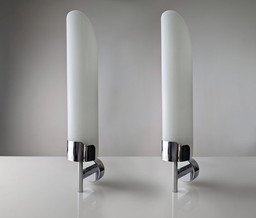 Pair of vintage wall lamps in chrome and glass, 1980s