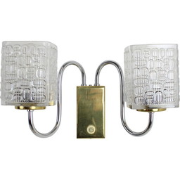Vintage glass and brass wall lamp, Czechoslovakia