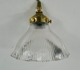 Vintage French Holophane Pendant Lamp Glass RibbedVintage French Holophane Pendant Lamp Glass Ribbed