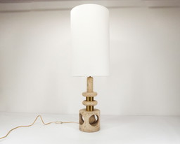 Pied De Lampe Sculpture En Travertin 1970