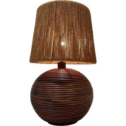 Round rattan lamp with rope shade. French work in the style of Adrien Adoux and Frida Minet. Circa 1970Round rattan lamp with rope shade. French work in the style of Adrien Adoux and Frida Minet. Circa 1970