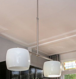 Hang your designer lamp in front of a mirror. An old, well-known interior design trick that still works well. Hanging the design light in front of the mirror reflects the light and makes the room look bigger.