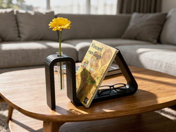3D Printed Book Stand with Glasses Holder & Test Tube Vase – Eggshell Yellow PLA Decorative Book Display