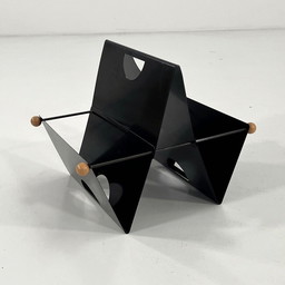 Designer armchair in black leather and walnut