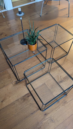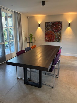 Stainless steel design base for glass table – sculptural, timeless design