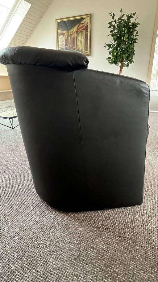 VINTAGE 1970S ARMCHAIR WITH FOOTREST IN METAL AND LEATHER, ITALIAN DESIGN