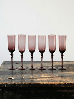 Lot de 6 grandes flûtes à Champagne vintages 70-80's verre soufflé violineLot de 6 grandes flûtes à Champagne vintages 70-80's verre soufflé violine
