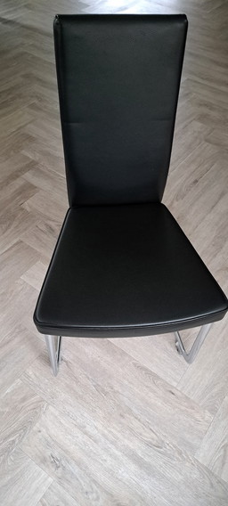 6 zwarte eetkamerstoelen van Arne Jacobsen voor Fritz Hansen model Grand Prix6 zwarte eetkamerstoelen van Arne Jacobsen voor Fritz Hansen model Grand Prix