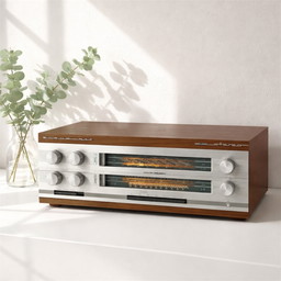 Alexa/Google Home-hoes in de vorm van een vintage radio
