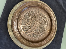 Handdoekrek van matgoud messing met houten basis. Eigentijds.