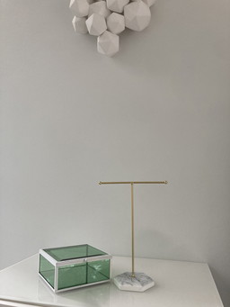 Handdoekrek van matgoud messing met houten basis. Eigentijds.