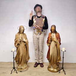 Antiek Frans gipsen wandconsole met 3 cherubijnen, jaren 1900