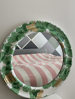 Zeer zeldzame grote wandspiegel uit de jaren 50, in de stijl van mid-century modern met mozaïek en messing.