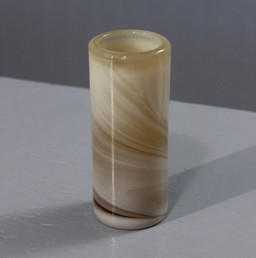 Geblazen glazen vaas met opaal glazen strengen