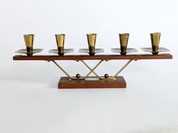 Vintage Teakhouten Kandelaar Kaarsenhouder Messing