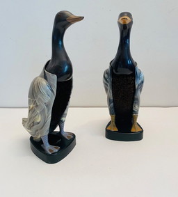 Schitterende handbeschilderde Helmut Drexler porseleinen set van vijf vaten - goud & violet-grijs 'Goldfeuer' serie