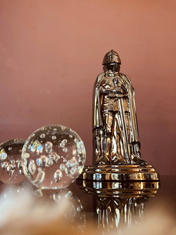 Geometrische kaarsenhouders, gepatineerd grijs metaal