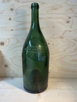 Antieke rieten mandfles, H 38 cm D 20 cm