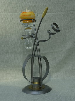 Grote zwarte smeedijzeren Brutalistische kandelaar 1950-1960