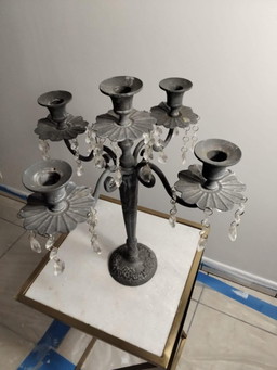 Mid Century kandelaar in historicistische stijl, zware 5-armige kandelaar met originele decoratieve kaarsen, jaren 1960-1970