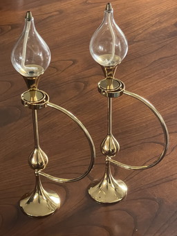 Vintage MCM Art Deco Tear Drop Glazen Metalen Kaarsenhouder