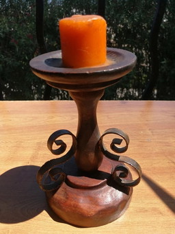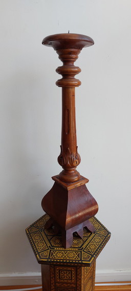 Grote kaarsenhouder in oranje-geel gelakt hout