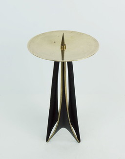 Kandelaars en kaarsen, essenhout, Messing, jaren 60, met 4 stokkaarsen