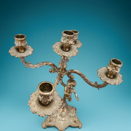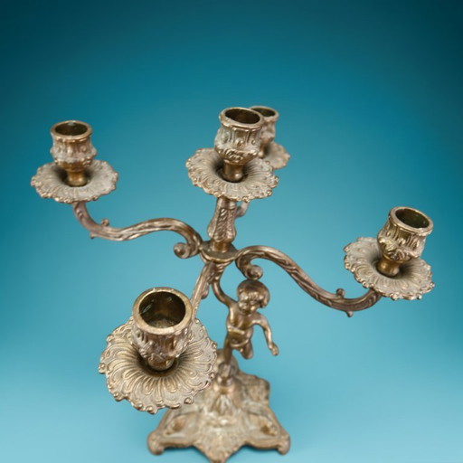 Vintage Franse Vijfarmige Koperen Kandelaar