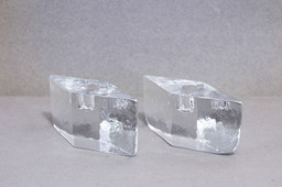 Vintage set van 2 Glas kandelaars jaren 60 Scandinavie. Een paar glazen kandelaars uit de jaren 1960. Deze vierkante blokken