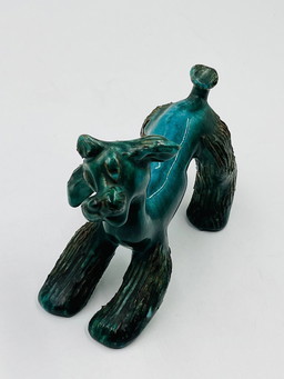 Keramiek melkannetje in blauw groene kleuren, is als bloemenvaasje zeer geschikt .
