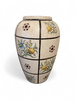 Scheurich table ceramic vase h. 10.82" colorful handpainted with orignal label sticker w. germany foreign 1960s wgp