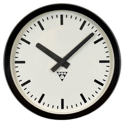 Zwarte industriële fabriekswandklok van Siemens, jaren 30