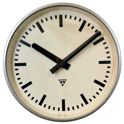 Industriële kantoorwandklok van Pragotron, jaren 70Industriële kantoorwandklok van Pragotron, jaren 70