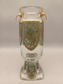Vitage Aziatische achthoekige omgekeerde bloem beschilderde kristallen vaas