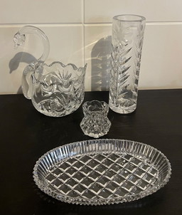 Kristallen Drieluiksschaal Met Zilveren Rand