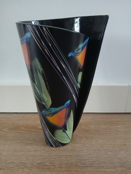 mid century glazen vaas hyalith glas zwart glas abstract decor email schilderij 1950